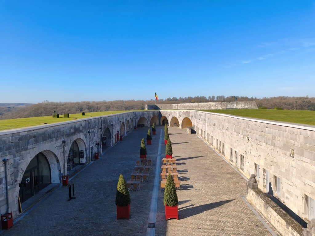 Im Innern der Festung sind einige der früheren Räumlichkeiten rekonstruiert und exemplarisch dargestellt. Als besonders beeindruckend erweist sich für mich die Ausstellung zum Überfall von deutschen Divisionen zu Beginn des 1. Weltkrieges im Juli/ August 1914. Bei dem sogenannten Massaker von Dinant zerstörten deutsche Truppen bei ihrem Durchmarsch nach Frankreich dreiviertel der Stadthäuser und töteten über 670 Zivilisten. Von August bis Oktober kamen im umliegenden Gebiet über 5500 Zivilisten durch deutsche Soldaten ums Leben. Die Ausstellung hierzu lässt in erschütternden, teils dreidimensional gestalteten (bewegten) Bildern und akustischen Zeugnissen ein wenig die Schrecken dieser Taten nachvollziehen. Leider lässt sich das hier nicht bildlich darstellen – fahrt mal hin und schaut euch die Ausstellung an!