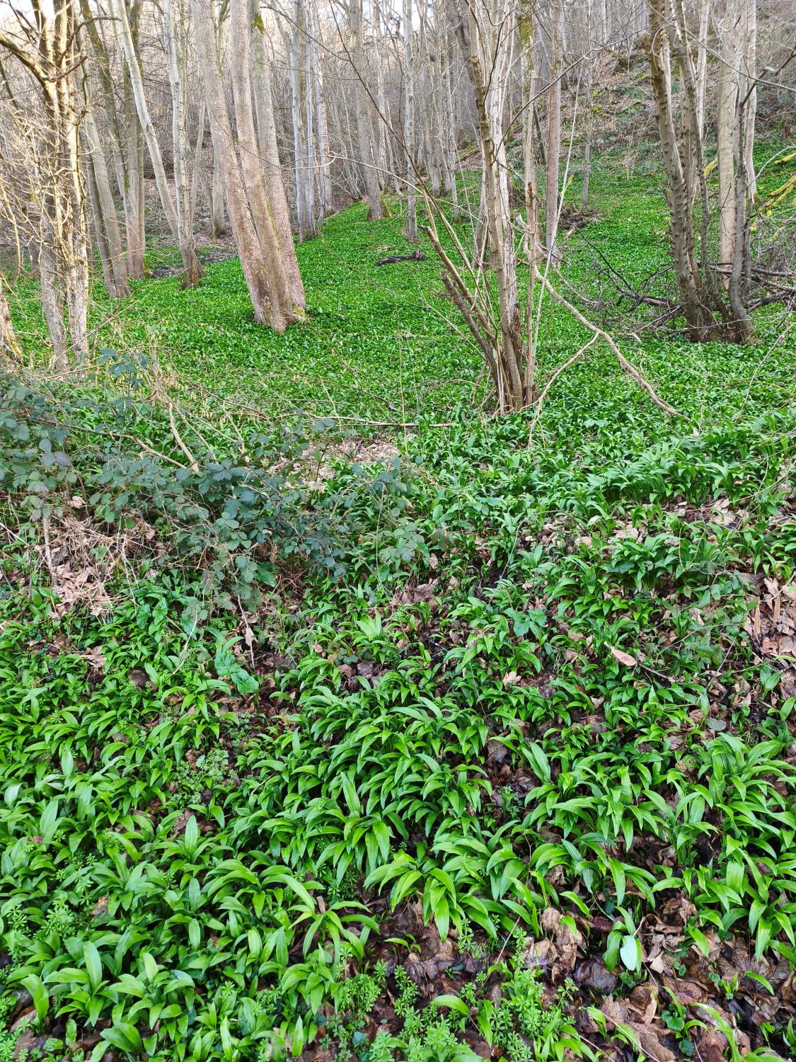 Von hier aus unternehme ich an den folgenden Tagen zwei Radtouren, die nicht besonders interessant sind – es geht auf dem sehr breit und glatt ausgebauten Voie verte trans Ardennes überwiegend am Fluss entlang. Langsam gewöhne ich mich wieder ans Radfahren und kann die frühlingshafte Natur genießen. Die Forsythien und Magnolien blühen, viele Bäume zeigen einen ersten hellgrünen Schleier, es summt in der Luft und riecht nach der erwachenden Natur. Am Geruch erkenne ich den im Wald neben dem Weg üppig wuchernden Bärlauch und pflücke mir mein Abendessen.