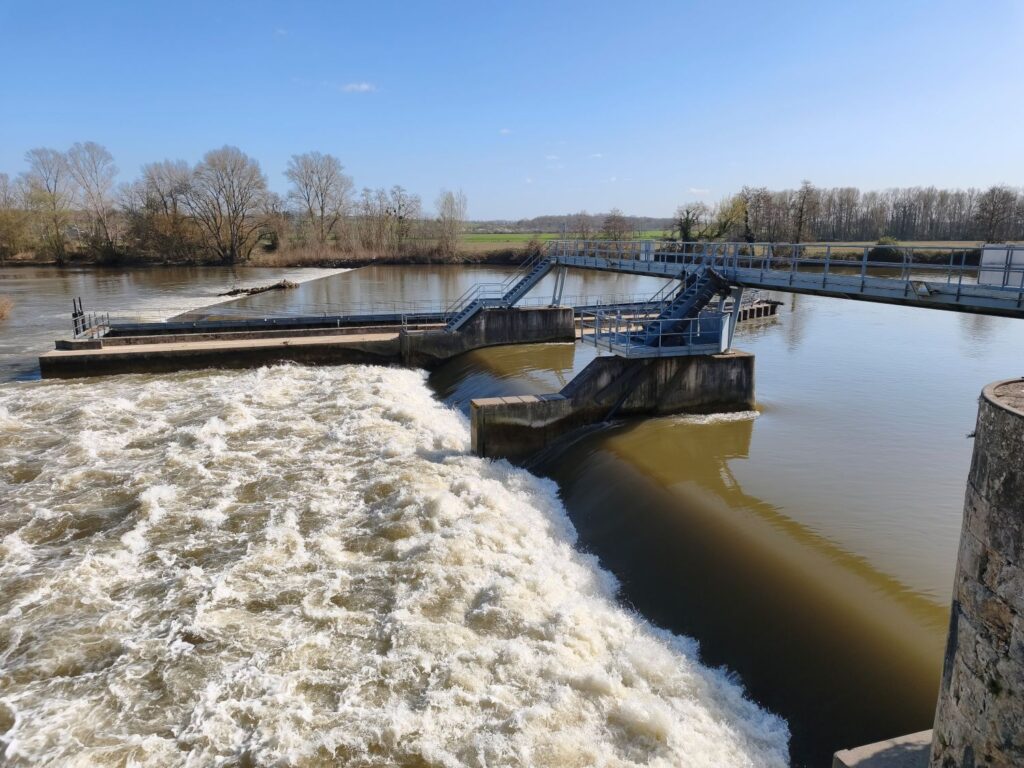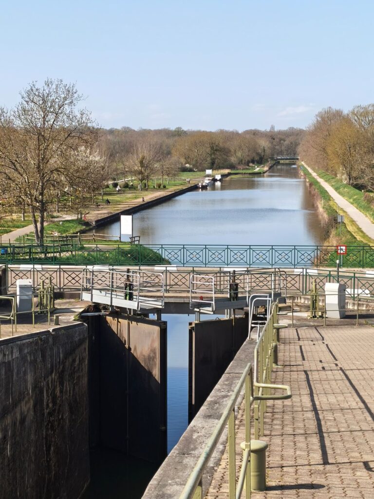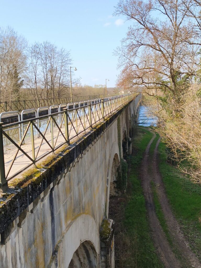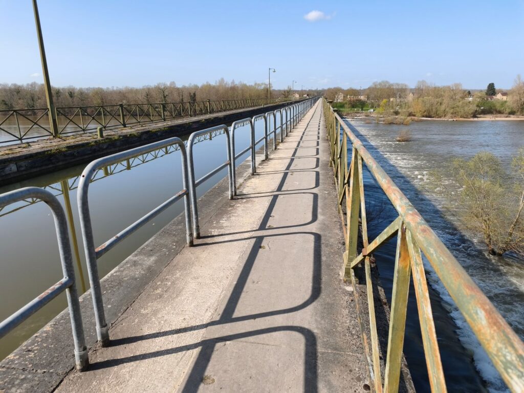 Die Sonne scheint warm, so dass ich gleich nach der Ankunft eine Radtour entlang der Kanäle, an etlichen Schleusen vorbei über die Kanalbrücke von Guétin bis nach Aprémont-sur-Allier unternehme. Welch ein Glück, bei Sonne am Wasser entlang zu radeln! Spannend ist die Brücke, die einen Seitenkanal der Loire über die Allier führt. Sie ist schon fast 200 Jahre alt und 343m lang. Am Bec d´Allier strömt der Fluss Allier mit Macht in die Loire.