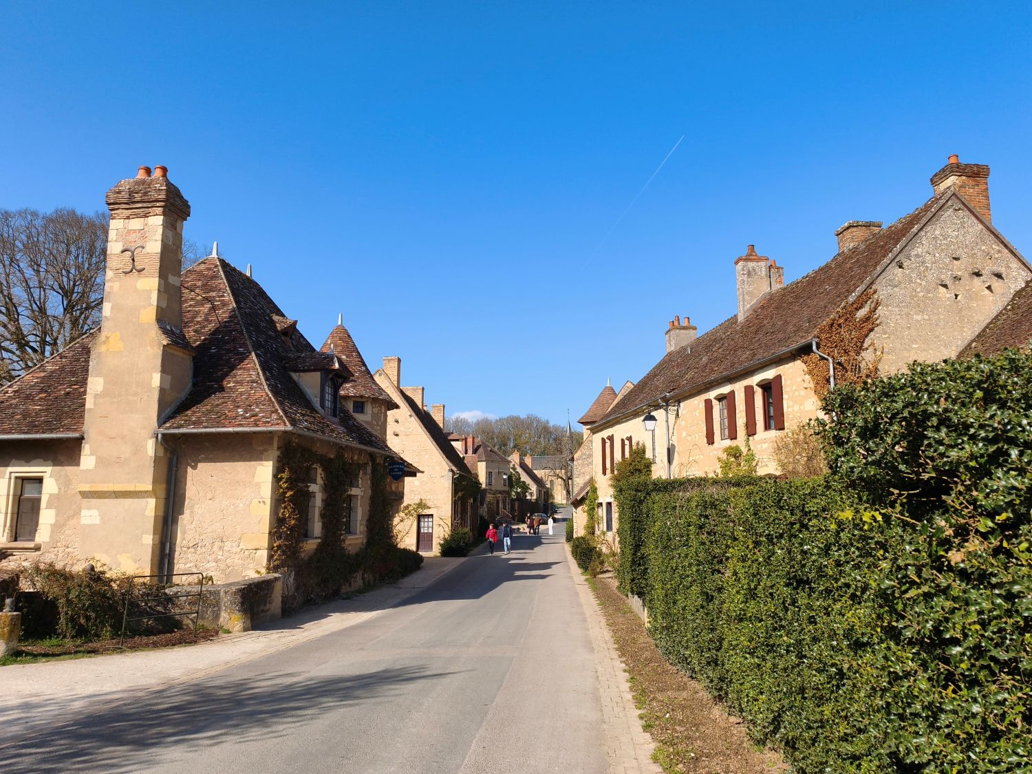 Das kleine Dorf Aprémont-sur Allier trägt zu Recht den Titel „eines der schönsten Dörfer Frankreichs“. Schmucke, gepflegte hellgraue Steinhäuser mit Dächern aus Ton oder Stein erinnern mich an die beschaulichen Dörfer in Cornwall. Nicht alles ist hier allerdings so alt wie es scheint: In der ersten Hälfte des 20. Jahrhunderts ließ der Hüttenmeister Eugène Schneider fast alle Häuser des Dorfes restaurieren oder gar abreißen und neu im mittelalterlichen Stil des Berry erbauen. So entstand die heute zu besichtigende, gelungene Einheit aus Dorf und Schloss.